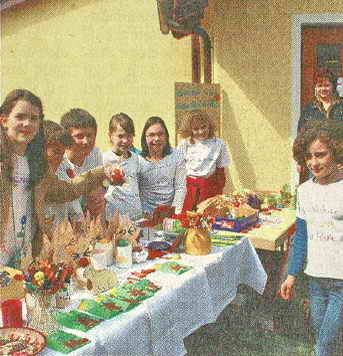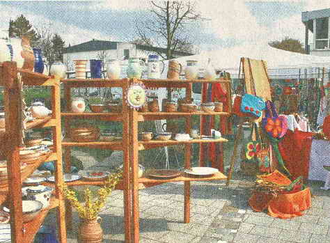 Die Landfrauen bewirteten mit Kaffee und Kuchen im Pfarrheim. Rund 60 Kuchen und Torten gingen an die Besucher und schon vor Marktschluss war alles an die Frau, den Mann gebracht. Der Spendenerlös wird für einen sozialen Zweck zur Verfügung gestellt. Recht geschäftstüchtig waren auch die Klassen 4b und 4c der Grundschule mit ihrem. Osterverkauf beim Pfarrheim. Eine schöne beispielgebende Idee! Den Erlös aus den selbst gebastelten Osterartikeln spenden die Grundschülerinnen und -schüler ebenso für einen guten Zweck.