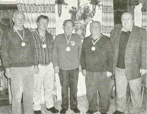 Leider habe die erste Mannschaft aus der Bayernliga wieder absteigen müssen. Man könne jedoch mit dem zweiten Platz in der B-Klasse wieder den Aufstieg in die A-Klasse feiern. Der Abteilungsleiter gratulierte den Schützen Josef Aumer, Xaver Baier, Erwin Feldmeier senior und Arno Gerhardt zu dem Erfolg und überreichte dem erfolgreichen Team die Medaillen.