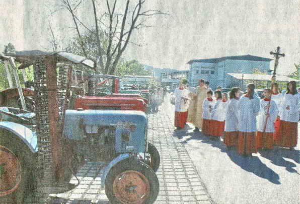 Nach dem gemeinsamen Gottesdienst, bei dem die vier Feuerwehren auch den Florianitag begingen, wurden von Pfarrer Martin Müller auf dem Schulhof, auf dem Weg dorthin und auf dem Kirchplatz die Fahrzeuge mit ihren Fahrern und Mitfahrern gesegnet. Vertreten waren Fahrzeuge aller Art – Personenwagen, Motorräder, Traktoren, Mopeds und Roller sowie Fahrräder.