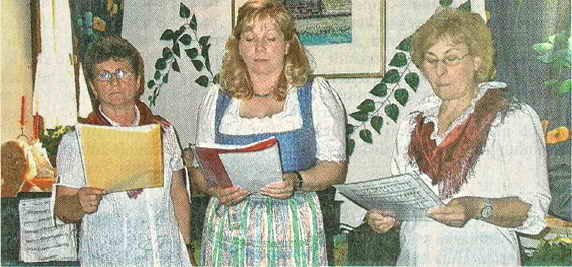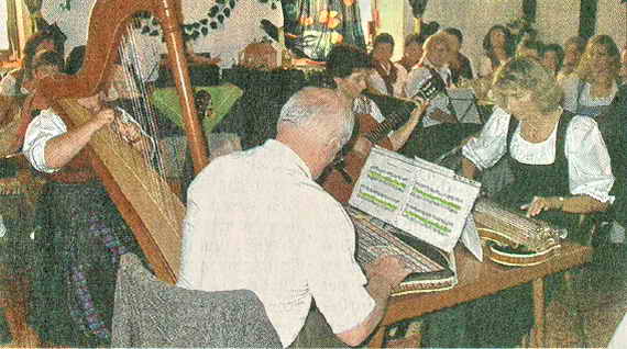 Viel Beachtung fand die Drachselsrieder Stubenmusi, die mit Akkordeon, Harfe, Geige und Zither die Musikstücke „Riegerlboarischer“, „An Leo seiner“ oder „A schöner Landler“ fast schon professionell vortrugen. Still und ergriff en waren alle Zuhörer, als Hermann Mühlbauer aus Hunderdorf mit Zither und Gesang mit Liedern aus unserer Heimat aufwartete, wie „Im Tal do geh i jagern“, „Erdenfleckerl“, „Im Frühjahr“ und „Es fangt doch scho des Frühjahr o“. Zwischen den Vorführungen wurden vom ganzen Saal gemeinsam die Lieder „Die schöne Bayerwaldlerin“ „Das Böhmerwaldlied“ und „Mia san vom Woid dahoam“ gesungen.