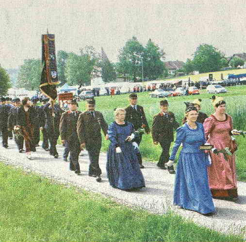 fortführen und ausbauen zu wollen. Dem Festgottesdienst ging ein farbenfroher Kirchenzug voraus. Begründet wurde die Partnerschaft beim Volks- und Musikfest im Jahr 1987. Sie entstand aus dem guten Kontakt der beiden örtlichen Musikvereine.
