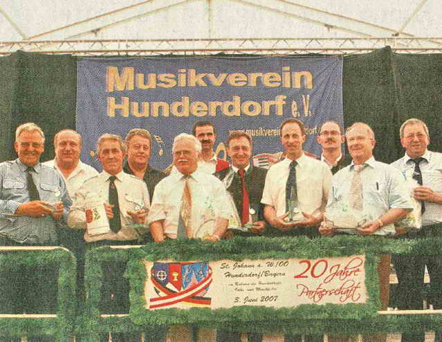 Ein zusätzliches Lob zollte der Landtagsabgeordnete dem Musikverein für den maßgebenden Anteil bei der Begründung und Fortführung der Gemeindepartnerschaft und damit für den europäischen Einigungsgedanken. Hervorzuheben sei die Beteiligung des Musikvereins bei der Jugendaktion „drei Tage Zeit für Helden“. Der Samstag und Sonntag stand im Zeichen des 25-jerigen Gründungsfestes des Musikvereins beziehungsweise des 20-jährigen Bestehens der Gemeindepartnerschaft Sankt Johann-Hunderdorf.
