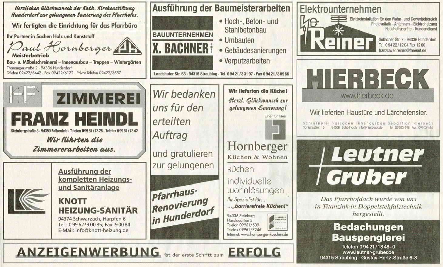 Der Pfarrherr freut sich, dass er nach der langen Zeit, die er nach dem Motto: „Lebst du schon oder haust du noch“ verbrachte, nun wirklich in Hunderdorf zu Hause ist. Bürgermeister Gerd Peschke stellte fest, dass die Renovierung des Pfarrhauses ein gelungenes Werk ist. Der Vorsitzende der Kirchenverwaltung, Josef Breu, nannte die Pfarrhaussanierung ein neues Kapitel in der langen Geschichte der Pfarrhofes Hunderdorf.