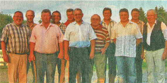 Der neue Vorstand mit Hans Hornberger und Xaver Neumaier, den Vertretern der Gemeinde (von links): Heinz Hentschirsch, Rudi Englmeier, Klaus-Peter Henke, Gerhard Scherz, Max Holzapfel, Hans Freundorfer, Hans Grill, Hans Hornberger, Robert Hainz, Xaver Neumaier. (Foto: he)