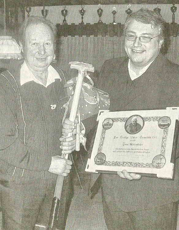 Pfarradministrator Abt Hermann-Josef Kugler freut sich, dass in Windberg so viele haupt- und ehrenamtliche Mitarbeiter bereit sind, die Pfarrei mitzuprägen und mitzugestalten. Ein weiser Spruch lautet: „Auf diese Steine können sie bauen“. Die Pfarrei Windberg hat viele dieser Steine. Er und sein Stellvertreter Pater Jakob haben vor einem Jahr die Seelsorge in Windberg übernommen und der Abt sagte allen verschiedenen Gruppen und Kreisen ein herzliches Vergelts Gott für das offene und konstruktive Miteinander. Die engsten Mitarbeiter treffen sich jeden Dienstag und besprechen alle anfallenden Aufgaben. Heuer findet am 17. und 18. Mai wieder ein Pfarrausflug zum Prämonstratenserldoster Speinshart statt, der das Zusammengehörigkeitsgefühl innerhalb der Pfarrei weiter stärken soll. Anmeldungen können ab sofort im Katharinenhaus entgegengenommen werden. Zu seiner Freude konnte Abt Hermann-Josef zum Schluss einen besonders aktiven und langjährigen Mitarbeiter auszeichnen. Toni Kittenhofer ist seit 50 Jahren im Friedhofsbereich tätig. Am Anfang als Handlanger, Leichenträger und seit 30 Jahren als Totengräber. Er bezeichnet sich selbst immer als „himmlischen Hofgärtner“ oder als „größten Arbeitgeber im Ort, da er die meisten Leute unter sich hat“. Abt Hermann-Josef überreichte ihm eine Urkunde mit einem Bild vom Papst.