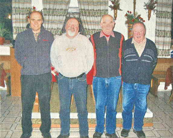 „OLDIES“ GEWINNEN VEREINSMEISTERSCHAFT. Bei besten Eisverhältnissen am Hunderdorf er Eisweiher konnte die Eisstockabteilung des SV Hunderdorf ihre Vereinsmeisterschaft auf Natureis durchführen. Abteilungsleiter Hans Söldner gratulierte bei der Siegerehrung den „Oldies“ mit Hans Holmer, Ferdl Hartmannsgruber, Klaus Dietl und Erwin Bierlmeier. Sie wurden mit 9:3 Punkten Vereinsmeister 2008 auf Natureis. Knapp dahinter mit 8:4 Punkten sicherten sich Werner Beck, Josef Ammer, Karl Riepl und Ewald Bauer den Vizemeistertitel. Karl Spranger, Max Holzapfel, Wolfgang Tinauer und Xaver Baier kamen auf ein Punkteverhältnis von 5:7, was Platz 3 bedeutete. Die Mannschaft Karl Zitzelsberger, Erwin Feldmeier sen., Erwin Feldmeier jun. und Xaver Hagn belegte mit 2:10 Punkten den vierten Platz. – Bild: Die Vereinsmeister Klaus Dietl, Erwin Bierlmeier, Hans Holmer, Ferdl Hartmannsgruber (von links). (Foto: he)