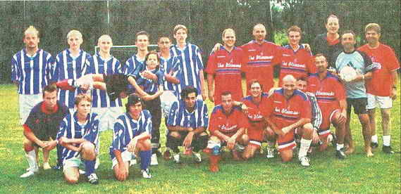 Vom überdachten Zeltdach vor dem Bauhof konnten die fairen, spannenden Spiele optimal verfolgt werden, und die Helfer der Windberger Wehr sorgten dafür, dass alle mit Grillspezialitäten und diversen Getränken versorgt wurden. Die Ortsmeisterschaft am Freitag und das Turnier am Samstag mit den Feuerwehren der Nachbargemeinden sollen besonders die Harmonie und Geselligkeit im Ort und mit den umliegenden Wehren fördern sowie an den Kommandanten Josef Förg der Windberger Wehr erinnern. Das Wetter war schwül-warm und verlangte den Spielern konditionsmäßig alles ab. Glücklicherweise regnete es am Freitag und Samstag entgegen der Wettervorhersagen nur jeweils ganz kurz. Am Freitag fand ab 15 Uhr die Ortsmeisterschaft mit 13 Mannschaften statt, darunter auch eine Damenmannschaft und eine Mannschaft der Ministranten, die beide auf jeden Fall eine Bereicherung waren und von den Favoriten durchaus packende Duelle lieferten. Die Ministranten wurden von den beiden Seelsorgern Abt Hermann-Josef und Pater Jakob tatkräftig angefeuert und hätten fast die Halbfinalspiele erreicht, ebenso „Die Mädel’s“. Die KuSK unterlag im Halbfinale dem MSC nach einem Endergebnis von 1:1 erst im Siebenmeterschießen mit 4:5. Das zweite Halbfinalspiel gewann der Sportverein souverän mit 5:1 gegen die Helden von Irensfelden. Im Endspiel setzten sich die Sportler mit 4:0 gegen die Motorsportler durch. Der SV Windberg ist damit Ortsmeister 2008 und verteidigte seinen Titel vom Vorjahr. Am Abend unterhielten die „Windberger Spitzbuam“ die vielen Gäste unterm Zeltdach und Kommandant Gerhard Mühlbauer überreichte jeder teilnehmenden Mannschaft einen Pokal und eine Flasche Sekt.
