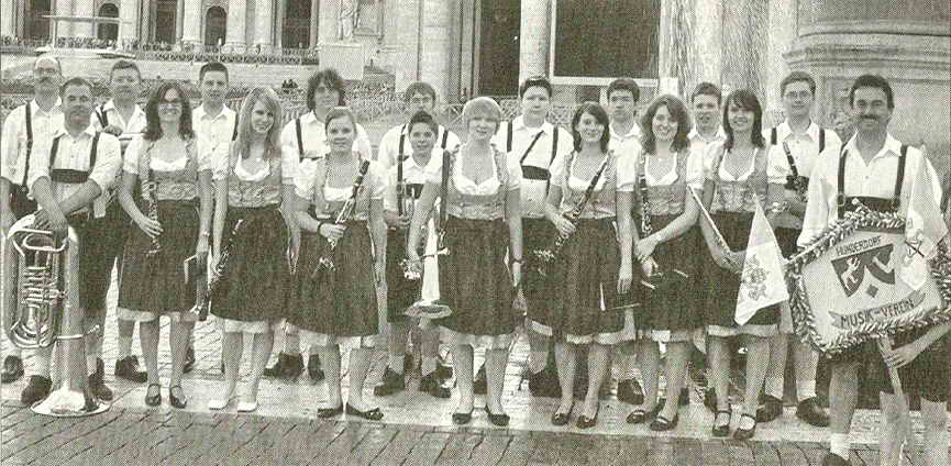 DIE BLASKAPELLE HUNDERDORF mit Kapellmeister Lothar Klein ist heuer zum zweiten Mal beim Gäubodenvolksfest in Straubing dabei. Die fesche gut 20-köpfige Blaskapelle sorgt am Donnerstag, 14. August, von 11.30 bis 17 Uhr im Beck-Festzelt für zünftige musikalische Unterhaltung. Weiterhin sind die Hunderdorfer Blasmusikanten heuer erstmals beim großen Münchener Oktoberfestauszug am 21. September dabei. Die Festauftritte sind weitere Höhepunkte im musikalisch recht erfolgreichen Vereinsjahr für die Blaskapelle Hunderdorf, die auch bereits bei verschiedenen Jubiläumsfestveranstaltungen und Festumzügen erfreuen konnte. — Bild: die Hunderdorfer Blaskakelle. (Foto: xk)