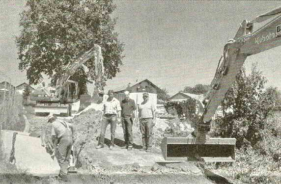 KANALBAU SCHREITET VORAN: Die Kanalbaumaßnahme Sollach als erster Teil des Kanalbauabschnitts 13 der Gemeinde Hunderdorf hat zu Wochenbeginn die zusammenhängend bebaute Ortschaft Sollach erreicht. Die Verlegung der Gefälledruckleitung auf freier Strecke einschließlich der beiden Anwesen Sollach 1 und la mit rund 1 000 Metern schritt in kürzester Zeit gut voran, wie sich Bürgermeister Hans Hornberger vor Ort bei einem Baustellentermin überzeugte. Derzeitig wird abschließend die Kanalleitung in den Ortsbereich Sollach gebaut, wo bis zum Abschluss der Maßnahme noch etwa 335 Meter Kanal zu verlegen sind. Insgesamt umfasst der Kanalbauabschnitt 13 der Gemeinde Hunderdorf insgesamt rund 1,3 Millionen Euro. Es stehen dazu Zuschüsse von rund 70 Prozent in Aussicht. — Bild: Bürgermeister Hans Hornberger im Gespräch mit Diplom-Ingenieur Christian Ruhland und Werkspolier Christian Müller. (Foto: xk)