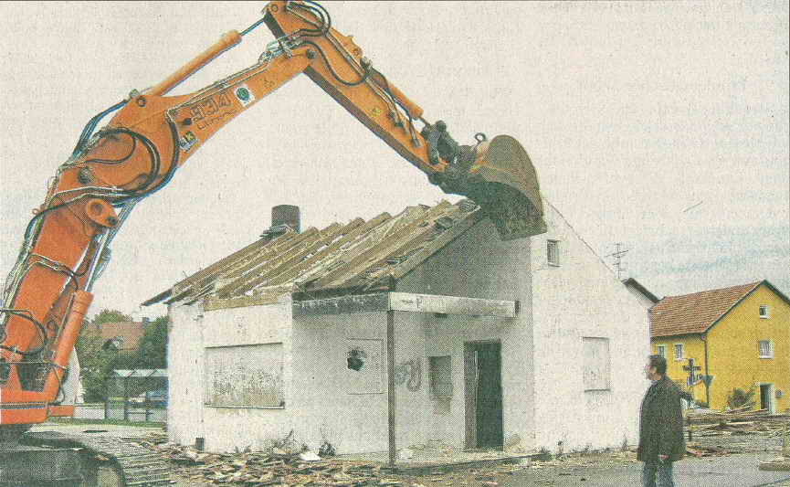 Lediglich ein Haufen von Abbruchholz und Bauschutt zeugte am Gelände dann noch vom ehemaligen Gebäude. Bürgermeister Hans Hornberger war vor Ort und verfolgte den Baubeginn der Ortskernsanierung im ehemaligen Bahnhofsbereich. In der Gemeinderatssitzung Anfang September wurde der Auftrag zur Ausführung der Straßen- und Pflasterarbeiten an den wirtschaftlichsten Angebotssteller, die Firma Ohneis, Straubing, mit einer Angebotssumme von rund 398 000 Euro erteilt. Weitere Auftragsvergaben stehen noch an hinsichtlich neuem Warte- und Infobereich, Begrünung sowie Straßenbeleuchtung.