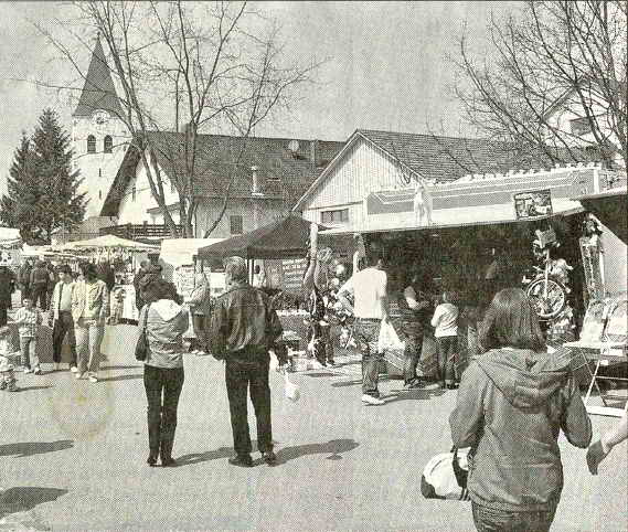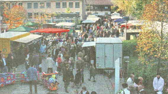 Ein stattliches Angebot ist beim Markttreiben am Schulzentrum zu finden, angefangen von Holzmarktprodukten, Keramik, Blumen- und Trockengestecken, Schmuck, Honig- und Imkereiprodukten, echtem Bauernbrot, Textilwaren, Wachskunst, Strickwaren, Holzspielzeug und Süßwaren. Weitere Fieranten bieten Esoterikartikel, selbstgebrannte Schnäpse, Schinken und Wurst, Käse aus der Hofkäserei, Obst und vieles mehr. Auch ein Kinderflohmarkt nach dem Motto „Jeder kann mitmachen“ ist fest eingeplant, ebenso eine Blumenverlosung. Auch für Essen und Trinken ist gesorgt. Für Kinder ist Gelegenheit zum Ponyreiten, für Pferdekutschenfahrten sowie zum Fahren mit der Minieisenbahn. Zudem bietet die Junge Union einen Luftballon-Weitflugwettbewerb an. Auch der Bayerwaldverein ist mit einem Vereinsartikel-Verkaufsstand vertreten. Die Landjugend bietet im Pfarrheim Kaffee, Kuchen und Gebäck.