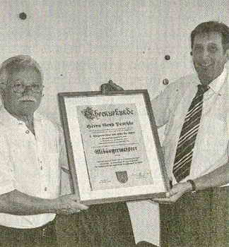 Bei der Sitzung zeichnete Bürgermeister Hans Hornberger den Dartsportler Pierre Finck aus Steinburg-Wegern aus. Er wurde heuer deutscher Dart-Liga-Mannschaftsmeister in der Mannschaft Horizont-Fanta-4 aus Waldkraiburg. „Wir freuen uns, einen deutschen Meister in unserer Gemeinde zu haben.“, so Hornberger. Durch den Erfolg wird Finck im April an der Weltmeisterschaft in Las Vegas teilnehmen. Finck wurde bereits 1997 Dart-Vizeweltmeister und stand bei den deutschen Meisterschaften der letzten Jahre im Finale. Viermal wurde er deutscher Vizemeister.