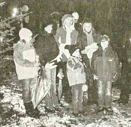 Pfarrer Abt Hermann-Josef Kugler freute sich bei seiner besinnlichen Einführung, dass trotz des ungemütlichen Wetters so viele Besucher in den Wald nach Oberbucha gekommen sind. Aber auch im Stall von Bethlehem sei es sicher nicht gemütlich gewesen, wenn es auch darin wahrscheinlich nicht geregnet habe. „Jetzt ist die Zeit, wo man die Tür weit aufmache für die Mitmenschen und Gott“, so der Seelsorger. Er erzählte eine vorweihnachtliche Geschichte, bei der auch Maria und Josef um Einlass baten und ihnen keine Tür aufgemacht wurde, sodass das Kind in einem Stall geboren wurde. Mit dem gemeinsamen Lied „Wir sagen an den lieben Advent“ wurde die Feier eröffnet. Die Abgeschiedenheit des Waldes sowie Geschichten, Gedichte und Lieder, vorgetragen von Philipp, Marco, Siegi, Melanie, Maria und Kathrin, schenkten allen genügend Ruhe, um den tiefen Sinn menschlichen Daseins zu erahnen. Der Windberger Abteichor sowie Brigitte und Sissi unter Leitung von Kirchenmusiker Joachim Schreiber erfreute die Besucher mit gesanglich hervorragend vorgetragenen Adventsliedern.