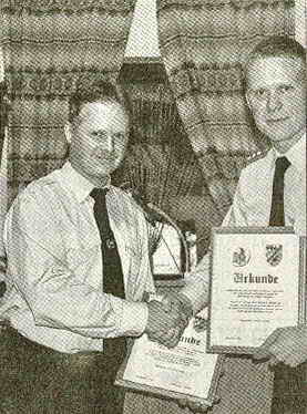 Danach folgte die Auszeichnung langjähriger verdienter Mitglieder. Ihnen wurde in Würdigung ihrer Verdienste um den Verein Dank und Anerkennung ausgesprochen. Folgende Mitglieder konnten von Vorsitzendem Friedrich Steineck und Bürgermeister Hans Hornberger die Ehrenurkunde für 30-jährige Vereinstreue mit dem Ehrenkreuz in Silber entgegennehmen: Josef und Ludwig Schießl, Manfred Mauermayer, Werner Schwarzensteiner und Karl Riepl. Für 40-jährige Mitgliedschaft wurde Josef Eberth mit dem Ehrenkreuz in Gold geehrt.