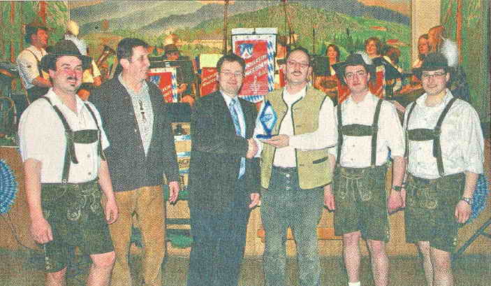 Jugendraute für Hans Pollmann (3. v. r); von links: Kapellmeister Lothar Klein, Bürgermeister Hans Hornberger, MdL Josef Zellmeier, Jugendwart Max Höcherl und 2. Vorsitzender Christian Michl. (Fo-tos: xk)