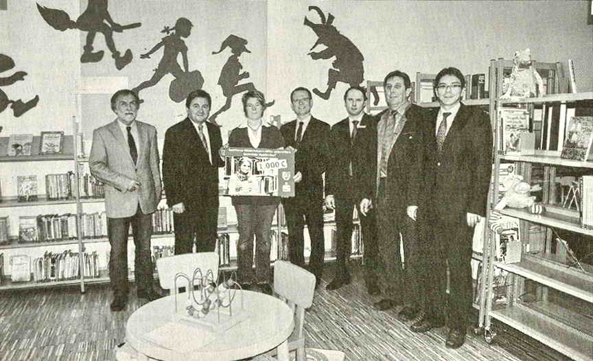 Eine Spende von 1 000 Euro für die neue Bibliothek in der Grund- und Mittelschule Hunderdorf überreichte der stellvertretende Vorstandsvorsitzende Dr. Martin Kreuzer von der Sparkasse Niederbayern-Mitte im Beisein von Landrat Alfred Reisinger zur Freude von Bürgermeister Hans Hornberger, Schulleiter Reinhard Dietz und Büchereileiterin Sandra Meindl. Reinhard Dietz als Schulleiter und Sprecher des Freundeskreises der Bibliothek Hunderdorf-Neukirchen-Windberg stellte dabei die neu eingerichtete attraktive Bücherei vor und dankte der Sparkasse für die Sponsorentätigkeit. Der erfreuliche Spendenbetrag werde verwendet für die neu eingeführten Bibliotheks-Zeitschriften, die nunmehr aus den ‚verschiedenen Bereichen angeboten werden können. Ein ansprechender Bestand an Büchern, Hörbüchern, Spielen, Zeitschriften, CDs und DVDs und ein ebenerdiger Zugang machen die Bücherei nun attraktiv. Als Glücksgriff und besonders erfreulich nannte Dietz die Unterstützung durch den Bibliotheksfreundeskreis. Dietz: „Die Leseerziehung ist unsere Hauptaufgabe und hierbei erhoffen wir uns einen gewaltigen Schub“. Kreuzer betonte bei der Spendenübergabe: „Mit diesem Zuschuss unterstützen wir den Ausbau der ehemaligen Schülerbücherei zur Gemeindebibliothek. Diese Neuausstattung überzeugt mich, mit der Spende das Richtige getan zu haben. Die Bildung der Jugend liegt uns sehr am Herzen und es geht auch um die Zukunft der Region.“ Reisinger zeigte sich über die großzügige Spende dankbar und unterstrich den nachhaltigen Einsatz dieser Mittel aus der Sparkassenstiftung, dessen Verteilung auch der Landkreis bestmöglich unterstütze in den Bereichen Kultur, Jugendbildung und vieles mehr. Bürgermeister Hans Hornberger dankte Namens der Gemeinde, die Trägerin der Bibliothek ist, für den Spendenbetrag. — Bild: Freuten sich bei der Spendenübergabe (von links): Schulleiter Reinhard Dietz, Landrat Alfred Reisinger, Büchereileiterin Sandra Meindl, stellvertretender Vorstandsvorsitzender Dr. Martin Kreuzer, Sparkassen-Geschäftsstellenleiter Wolfgang Hofmeister, Bürgermeister Hans Hornberger und Landkreis-Kulturreferent Markus Mühlbauer. (Foto: xk)
