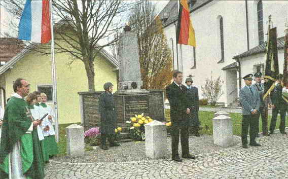Bürgermeister Hans Hornberger legte zusammen mit dem KuSKVorsitzenden Roland Peschke ein Kranzgebinde am Mahnmal nieder. – Die Blaskapelle des Musikvereins Hunderdorf gestaltete die Gedenkfeier mit Chorälen.
