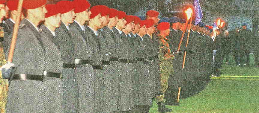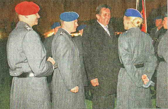 (ma) Die seit 18 Monaten bestehende Patenschaft zwischen der 5. Kompanie des Panzerpionierbataillons 4 und der Gemeinde Hunderdorf erfuhr am Donnerstagabend mit dem feierlichen Gelöbnis auf deren Sportplatz eine weitere Vertiefung. Zahlreiche Hunderdorfer Vereinsabordnungen und Bürger bekundeten mit ihrer Anwesenheit ihre Verbundenheit zu den Soldaten.