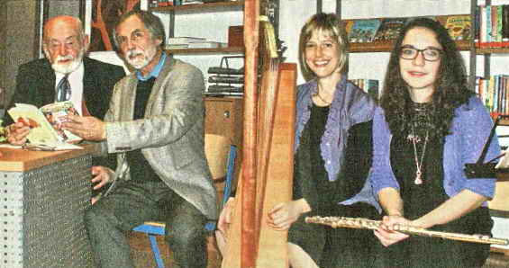 Josef Fendl im Gespräch mit Reinhard Dietz vom Freundeskreis der Bibliothek, daneben die Musikerinnen Evi Groß und Christina Obermeier. (Foto: as)