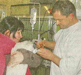 Als der kleine Hund ihr in den Arm gelegt wird, drückt sie ihn ganz sacht an sich, hält ihn auch fest, als der Tierarzt die Infusion aus der rechten Vorderpfote entfernt. Ricky ist noch immer verwirrt und geschwächt, hat seine Blase noch nicht wieder unter. Kontrolle, seine Leberwerte sind noch sehr schlecht. „Aber er ist über den Berg“, meint Hans-Peter Fuchs zuversichtlich. Niere und Bauchspeicheldrüse arbeiteten wieder normal, Ricky muss aber noch Entgiftungs-Tabletten bekommen und darf die nächsten Tage nicht viel laufen.