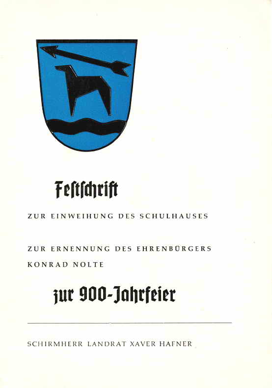 Die Ehrenbürgerurkunde überreiche ich heute Herrn Konrad Nolte. Als erster Ehrenbürger unserer Gemeinde ist er damit beurkundet. Sein Unternehmergeist und seine Tatkraft haben Hunderten von Menschen in ihrer Heimat eine Existenz gesichert. Ohne seinen Pioniergeist in schwerer Zeit wäre unsere Gemeinde klein und unscheinbar, wie sie es durch Jahrhunderte war.
