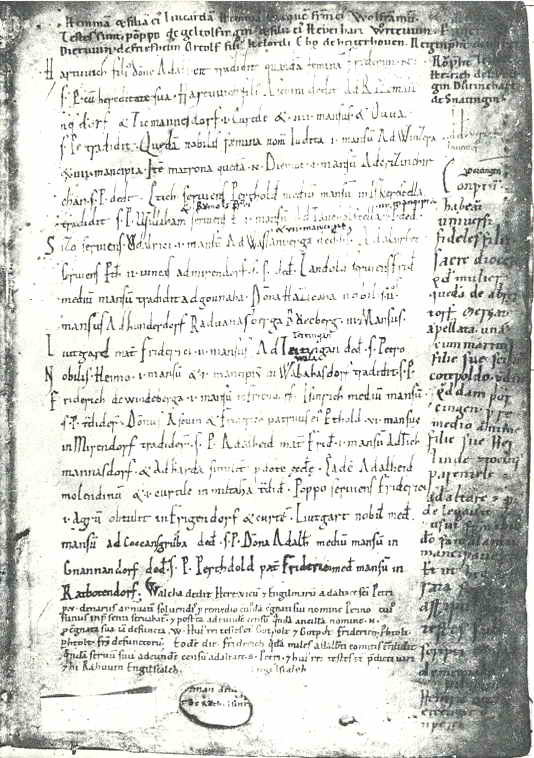 Eine Tochter des Aschwin war die nobilis domina Hazicaha. Sie übergibt dem Kloster Oberalteich 2 Mansen (Anwesen) in h-underdorf (Monumenta Boica Bd. 12, Seite 21). (Siehe Abbildung)
