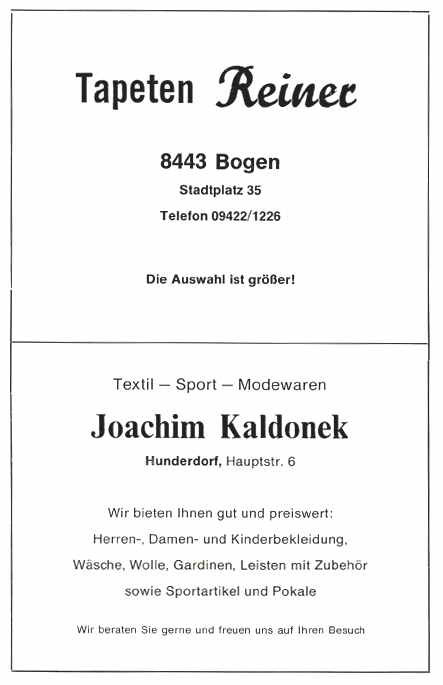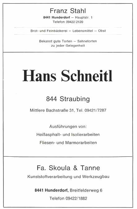 Zur 900-Jahr-Feier der Gemeinde Hunderdorf und zur feierlichen Einweihung des neuen Schulzentrums darf ich im Namen des Landkreises und des Kreistages Straubing—Bogen die herzlichsten Grüße und Glückwünsche entbieten.