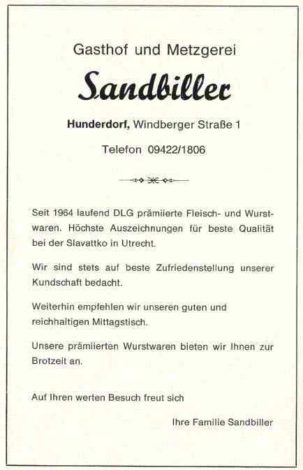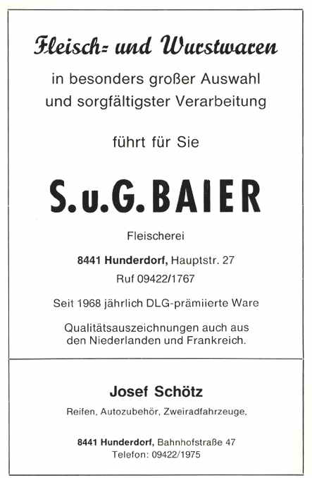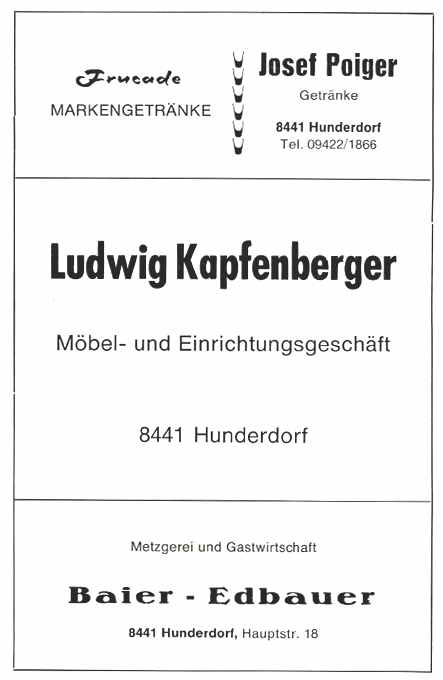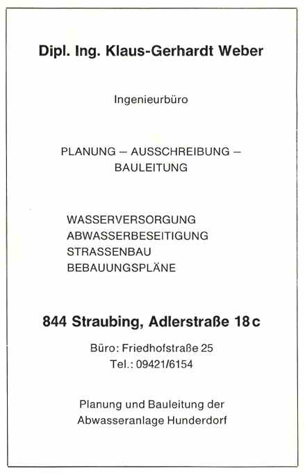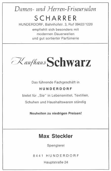 Ergänzend muß gesagt werden, daß die Nachforschungen über die Herkunft des Ortsnamens Hunderdorf als noch nicht abgeschlossen betrachtet werden müssen.