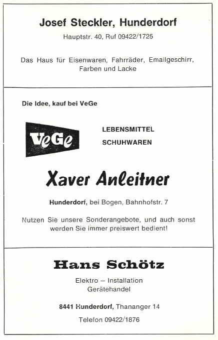 Das Vereinsleben in Hunderdorf hatte vor allem während der letzten Jahre einen starken Aufschwung zu verzeichnen.