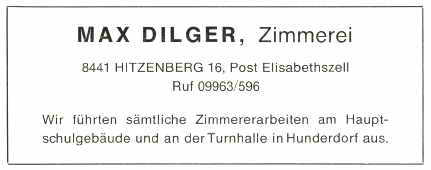 Einen bedeutenden wirtschaftlichen Aufschwung erfuhr unsere Gemeinde durch die Ansiedlung der Fa. Nolte im Jahre 1951. Da auf diese Weise eine Vielzahl neuer Arbeitsplätze geschaffen wurden, stieg zwangsläufig auch die Nachfrage nach einem festen Wohnsitz in Hunderdorf.
