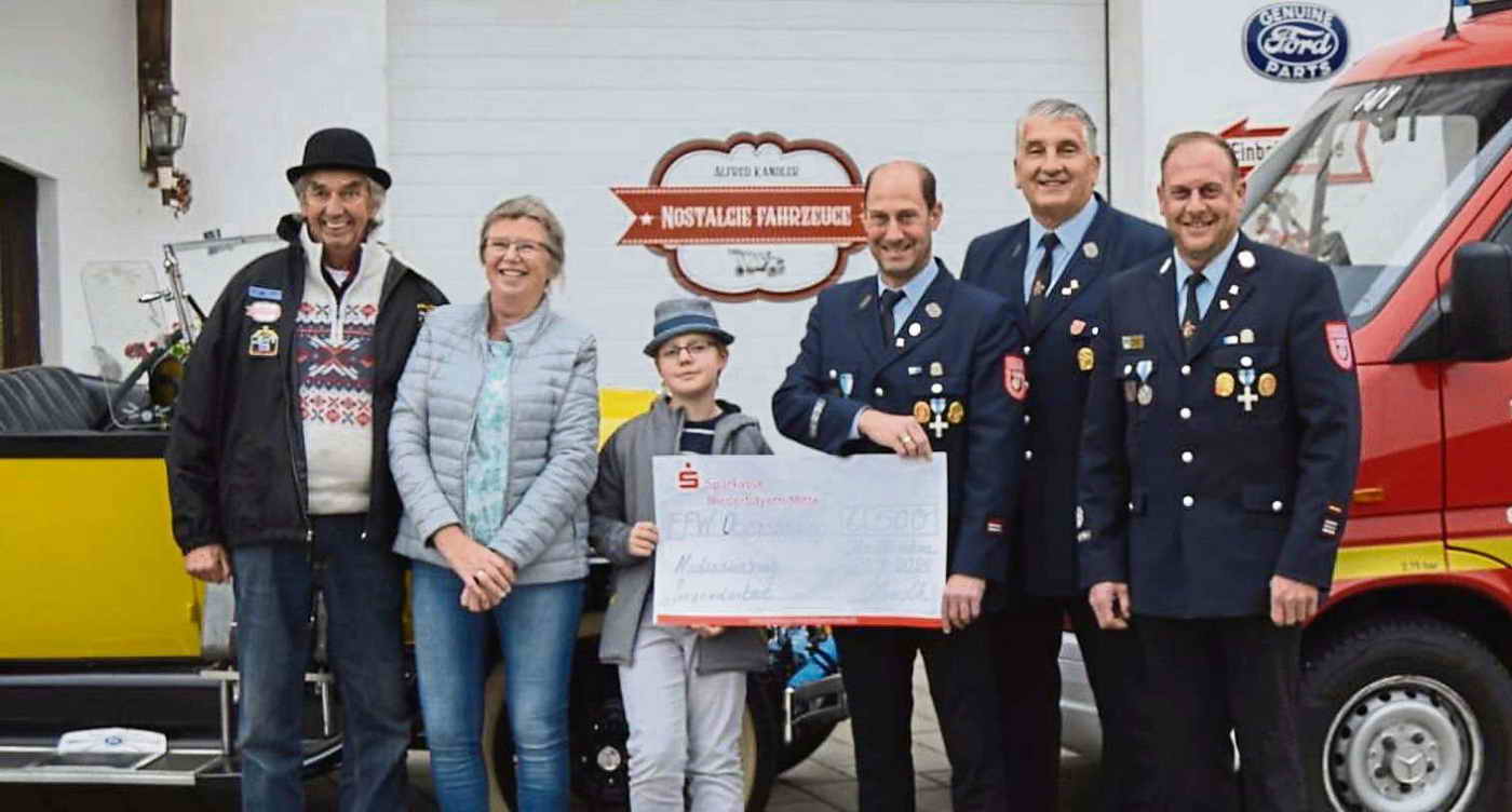 Die Interessengemeinschaft Nostalgie-Fahrzeuge Straubing-Straßkirchen unter dem Vorsitz von Alfred Kandler veranstaltet jedes Jahr ein besonderes Treffen für Liebhaber historischer Automobile. Teilnehmen dürfen ausschließlich Fahrzeuge bis Baujahr 1939 – also echte Vorkriegsfahrzeuge. Höhepunkt des Treffens ist traditionell eine gemeinsame Ausfahrt durch die Region Straubing. Dank der Unterstützung zahlreicher Sponsoren und der engagierten Teilnehmer konnte auch bei der Ausfahrt 2025 wieder ein erfreulicher Reinerlös erzielt werden. In diesem Jahr durfte sich die Jugendabteilung der Freiwilligen Feuerwehr Obersunzing-Niedersunzing (Gemeinde Leiblfing) über eine Spende freuen. Die Familie Alfred und Rosmarie Kandler übergab gemeinsam mit ihrem Enkel Joschua Seidel einen Scheck in Höhe von 500 Euro an die Jugendfeuerwehr. Die Förderung junger Menschen und die Unterstützung regionaler Organisationen liegen der Interessengemeinschaft besonders am Herzen. Durch das jährliche Treffen wird nicht nur die Leidenschaft für historische Fahrzeuge gepflegt, sondern zugleich ein wertvoller Beitrag für die Jugendarbeit in der Region geleistet. – Bild: Alfred und Rosmarie Kandler mit Enkel Joschua sowie Ludwig Sers jun., Georg Emer und Wolfgang Sers von der Freiwilligen Feuerwehr. Text/Foto: Franz Schmerbeck Quelle: Bogener Zeitung, 27.10.2025
